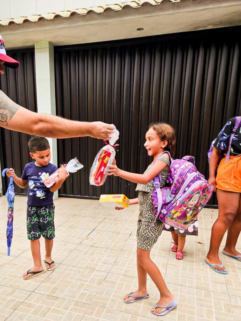 🎁 Ação realizada: Entrega de bombons, lanche completo, recreação e distribuição de carinho