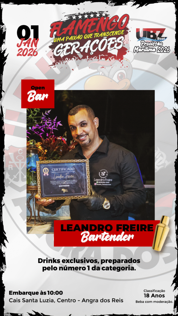 Está confirmado: no dia 1º de janeiro de 2026, o UBZ Boat zarpa mais uma vez nas águas de Angra dos Reis para transformar a Procissão Marítima em um espetáculo de alegria, irreverência e amor pelo Flamengo.